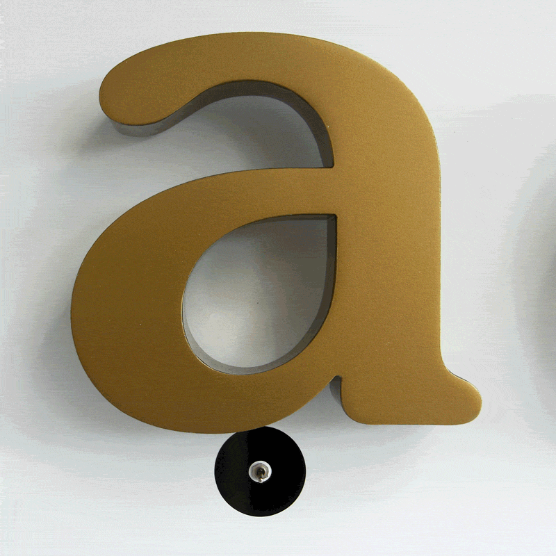 Profil 3 Zweiteiliger Vollreliefbuchstabe, Acrylglasboden für rückseitigen Lichtaustritt, mit Distanzhalter.